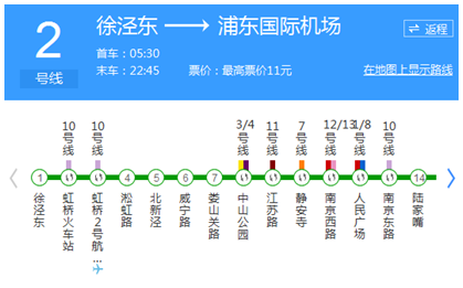 站下車(21站) 4號(hào)口出上海浦東國(guó)際機(jī)場(chǎng)下機(jī),總耗時(shí)較長(zhǎng),不建議選擇。